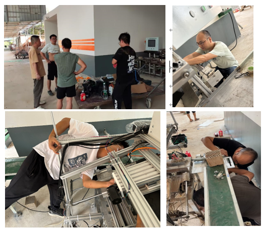 秉持著客戶第一的原則,我司的新機器率先抵達現場,并且在夜晚連夜進場,只為能在第二天以最快的速度為客戶安排妥當。我們迅速投入到工作中,發射硝檢測高精版的新裝機開始運作,同時還要對十臺老機子進行舊線產線改造。在高溫的炙烤下。
